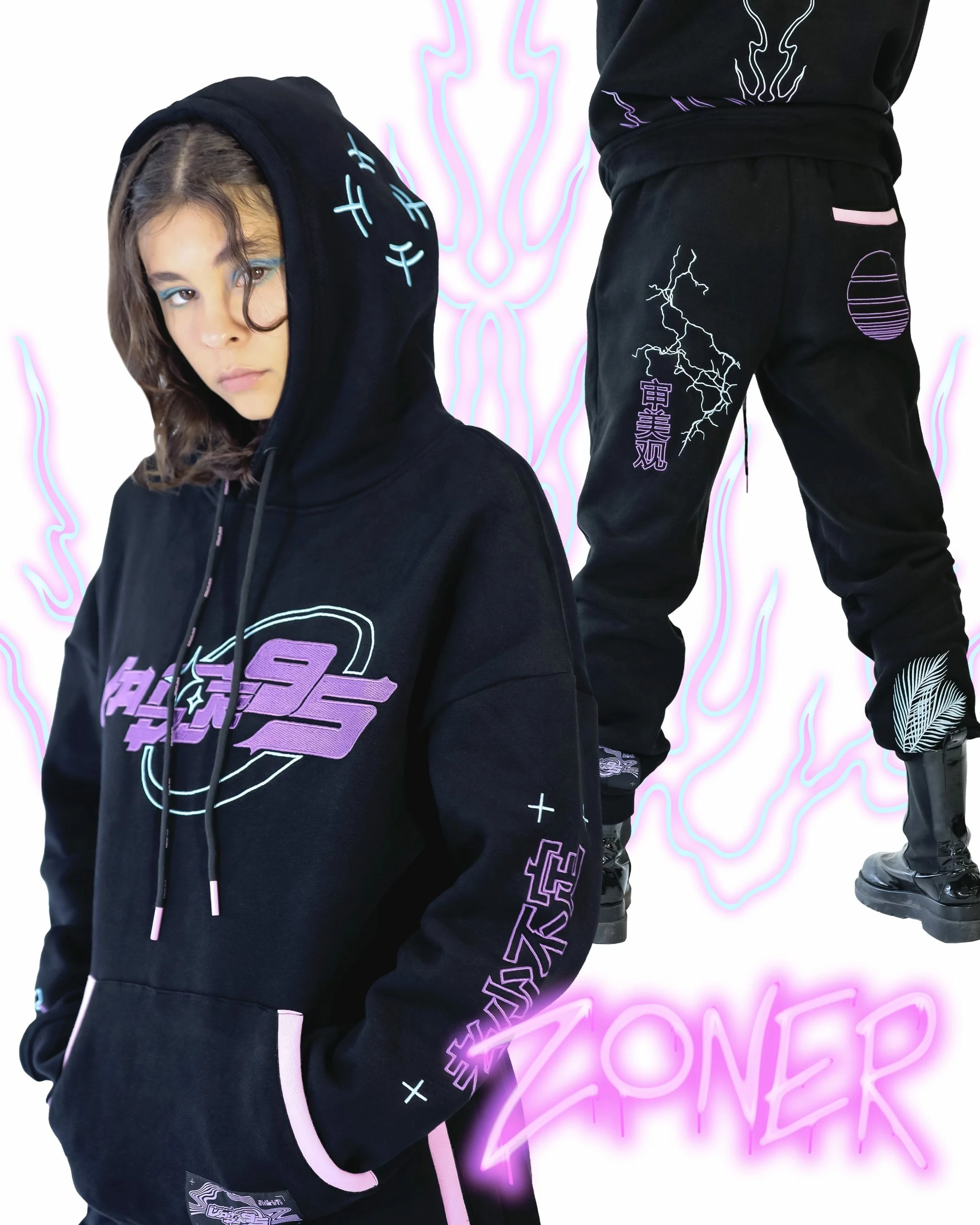 You enter ZONE CITY. The conspiracy theorists worst fever dream. Hard neon blasts your body as you weave under pulsing signs in a dense alleyway of wires, pipes and steam blasts. They’ve intercepted your signal and you’ve been targeted for liquidation. Become a ZONER and s u r v i v e.